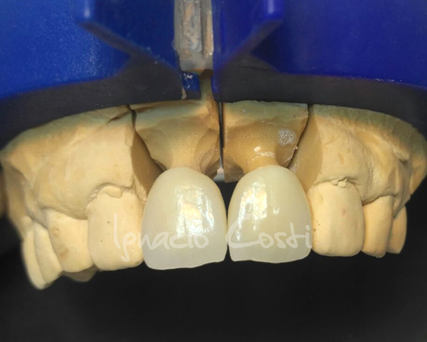 Metal sinterizado con base mecanizada y estratificación con cerámica GC.